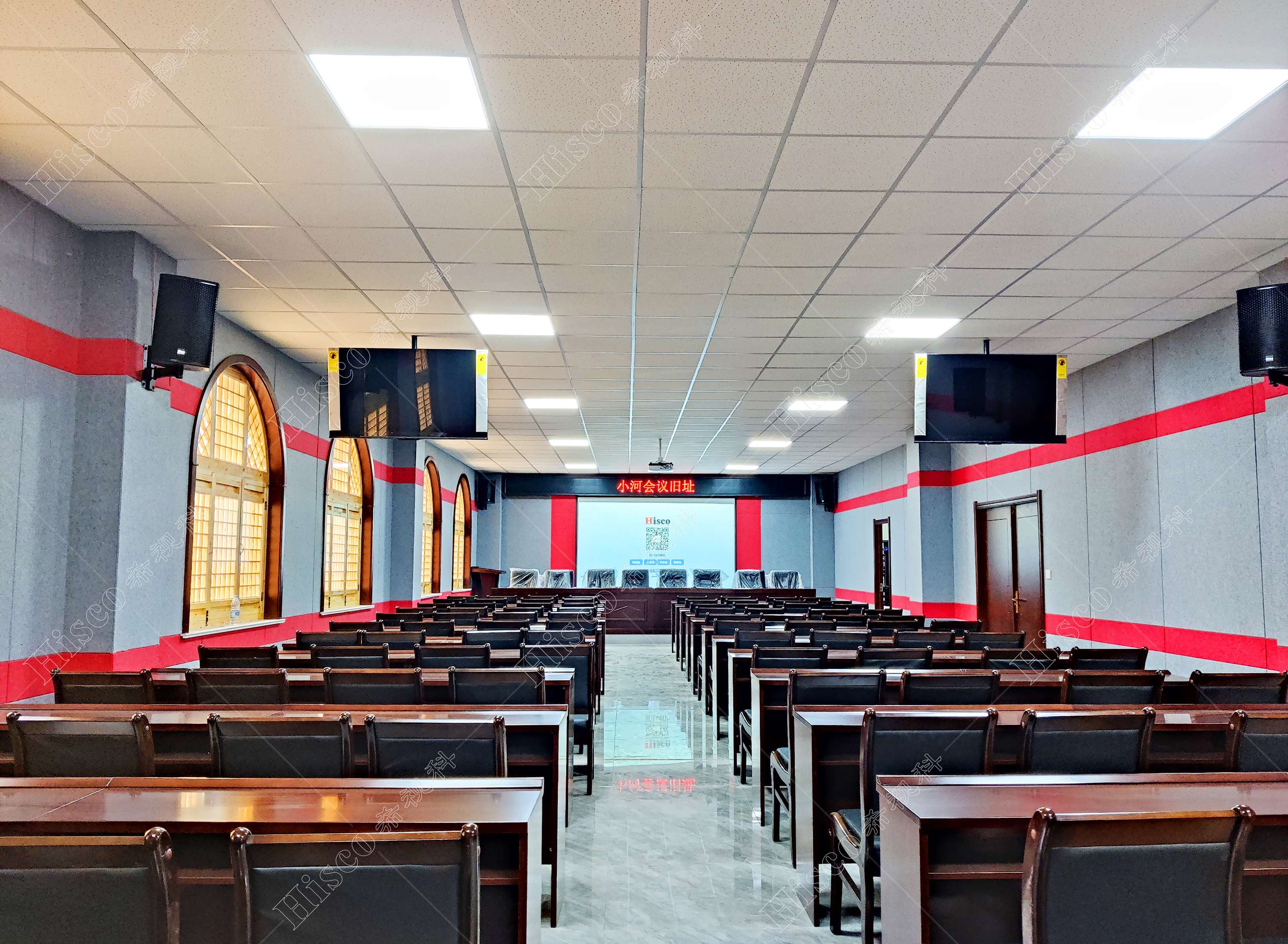 小河会议旧址在1997年被省委确定为爱国主义教育基地,2003年被省政府公布为第四批省级重点文物保护单位,2012年被延安干部学院列为现场体验教学点,是榆林市第一批市级革命传统教育基地。本次项目为智能楼宇会议室会议系统建设,主要设计了数字会议系统、扩声系统、显示系统、集中控制系统、矩阵系统、无纸化升降等。