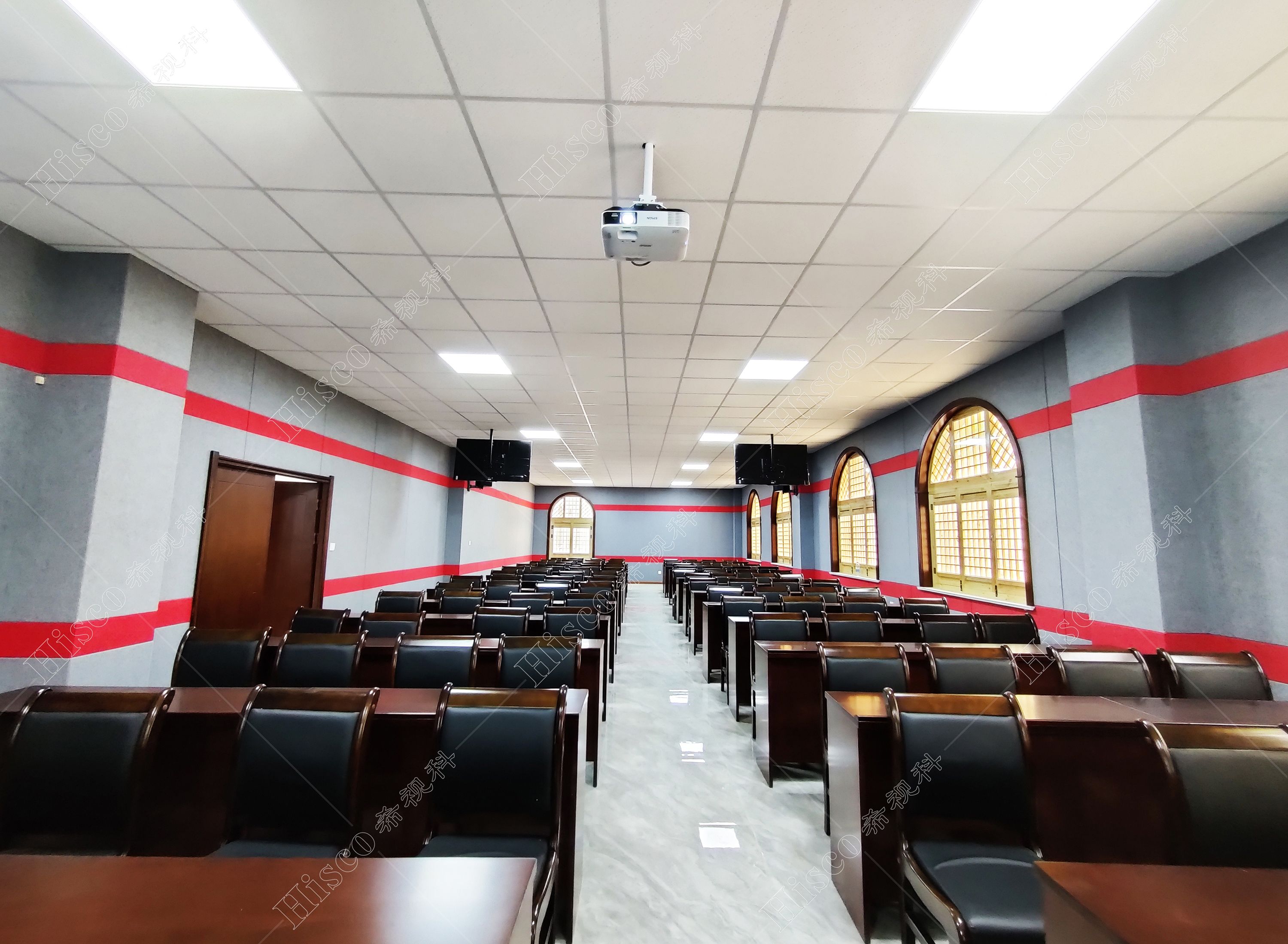 随着当今科技的飞速发展,老式的会议形式已无法适应现代化会议系统的要求。现代化的数字会议系统会议程序简单化、功能多样化,能够对会议实施控制、管理,包括声音传送稳定纯正,讨论清晰有序,使整个会议形式具有高效性。本次会议室设计采用数字会议系统,扩声系统、显示系统、集中控制系统、矩阵系统、无纸化升降等,实现会议室的多媒体会议功能,满足简洁流畅的会议过程、逼真传神的听觉效果、清晰舒适的视频显示、智能的摄像跟踪、媒体音视频信号源矩阵切换和中央集成控制等要求