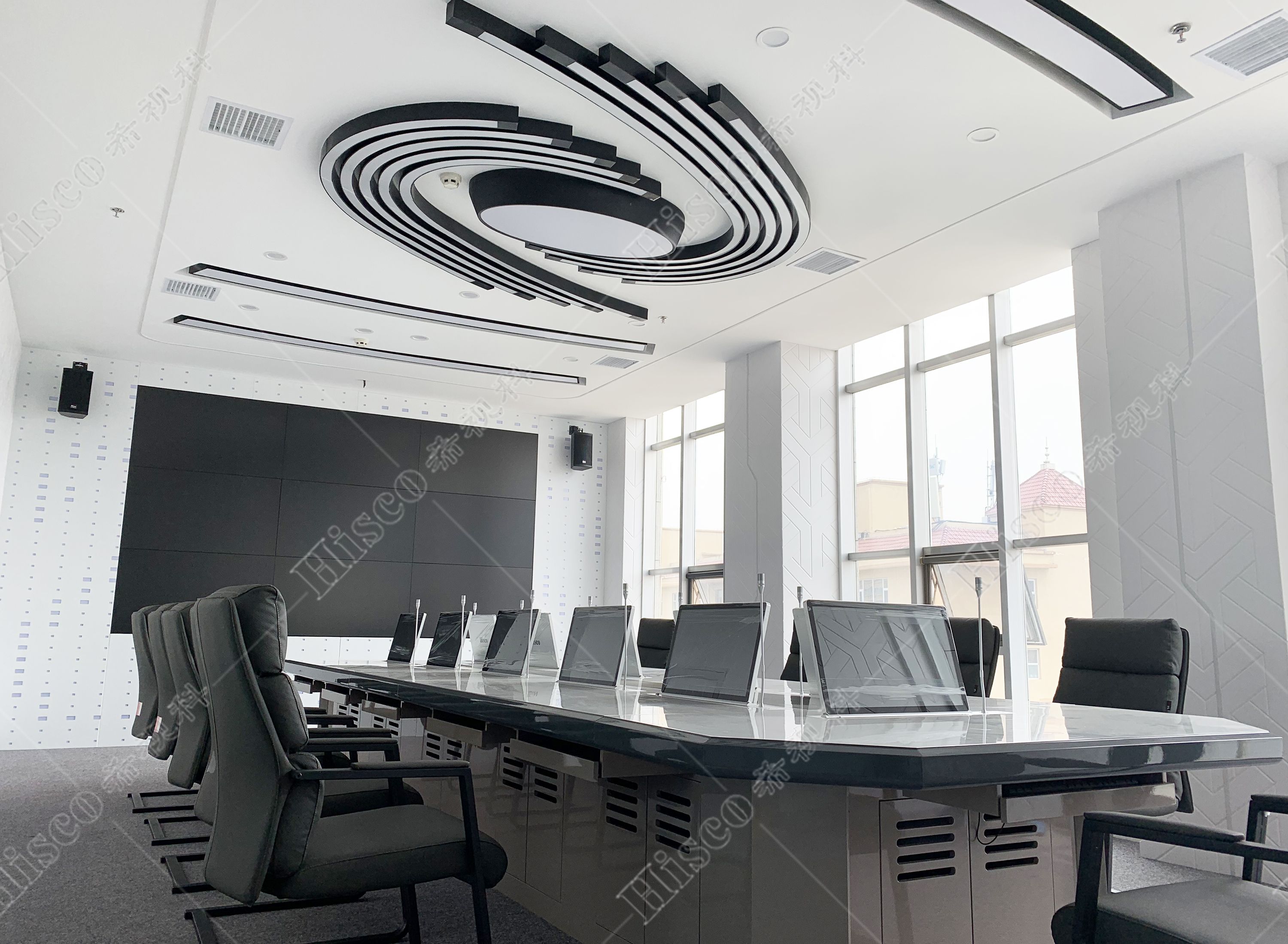 本次项目为司法机关会议室会议系统建设,主要设计了数字会议系统、扩声系统、显示系统、集中控制系统、矩阵系统、无纸化升降等。